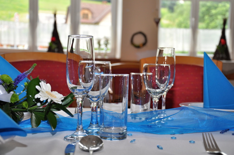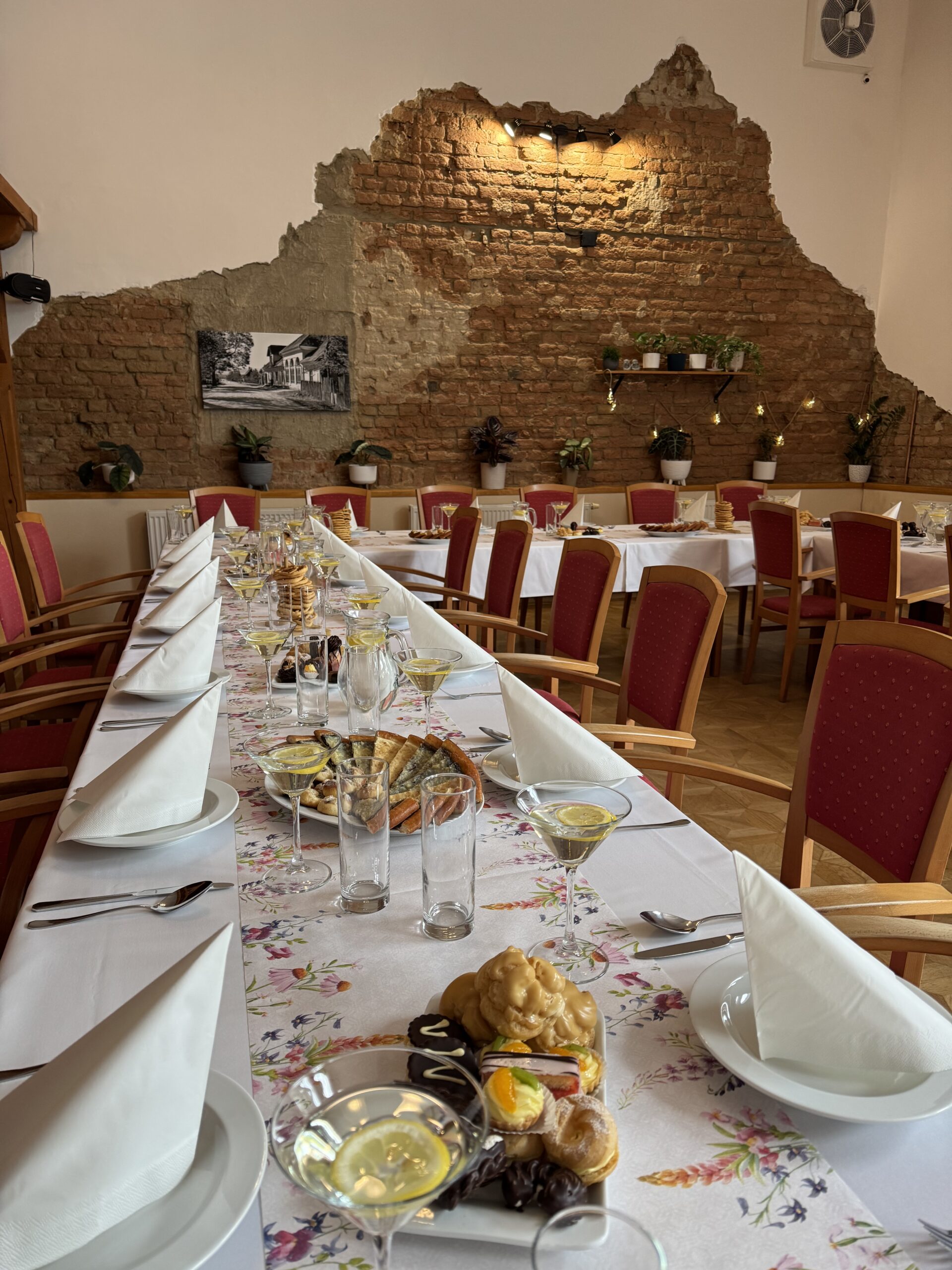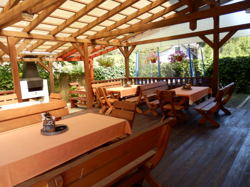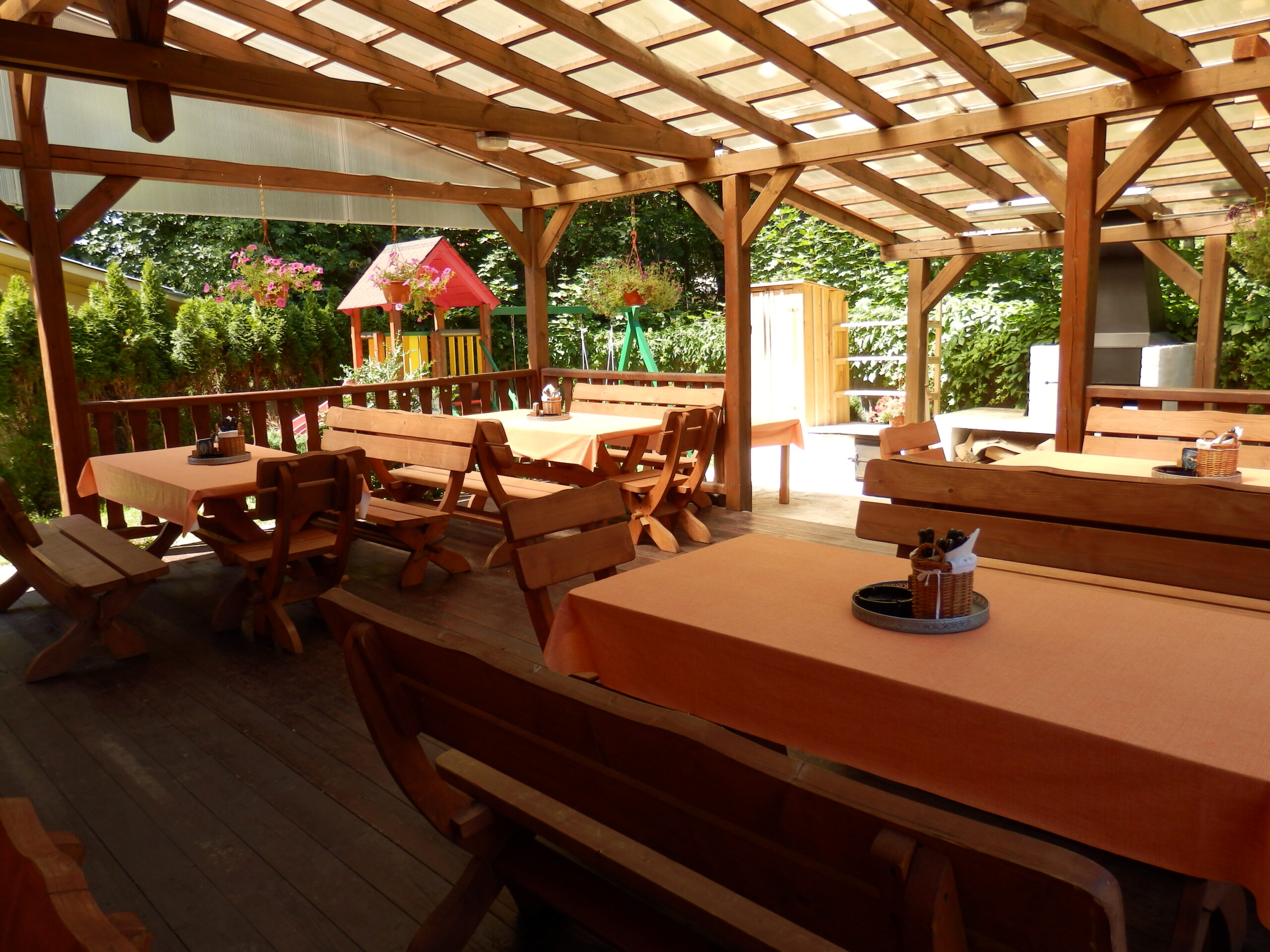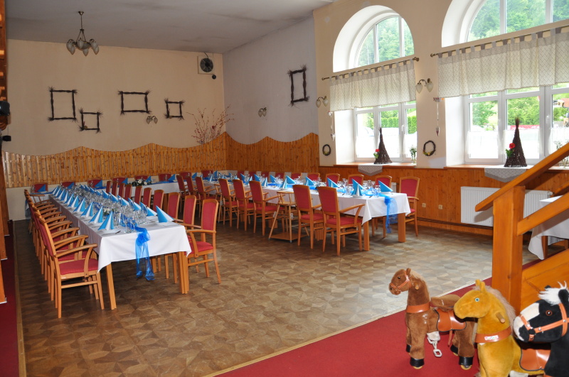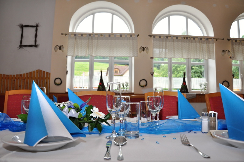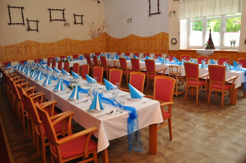 Nedílnou součástí penzionu je vlastní restaurace s kapacitou 100 míst a salonkem až pro 40 osob, takže svou kapacitou je zvláště vhodná pro pořádání svateb, společenských akcí, přátelských setkání a firemních akcí, které lze řešit formou rautů, či bufetu. Zrekonstruovaný interiér se stylovým balkonem přímo vybízí k příjemnému posezení u skleničky dobrého vína spojeného s poslechem živé hudby, nebo společné večeři či obědu v rámci poledního menu. Při zimních večerech Vám bude plápolat oheň z pravého krbu a v letních měsících k posezení láká otevřená zahrádka.